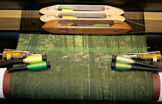 So there I was, chugging along on the 3-weft version of the bamboo grove, but not really liking what was developing. As usual, when that happens it's because of the colors or values or saturation levels of the yarns I've chosen to work with.